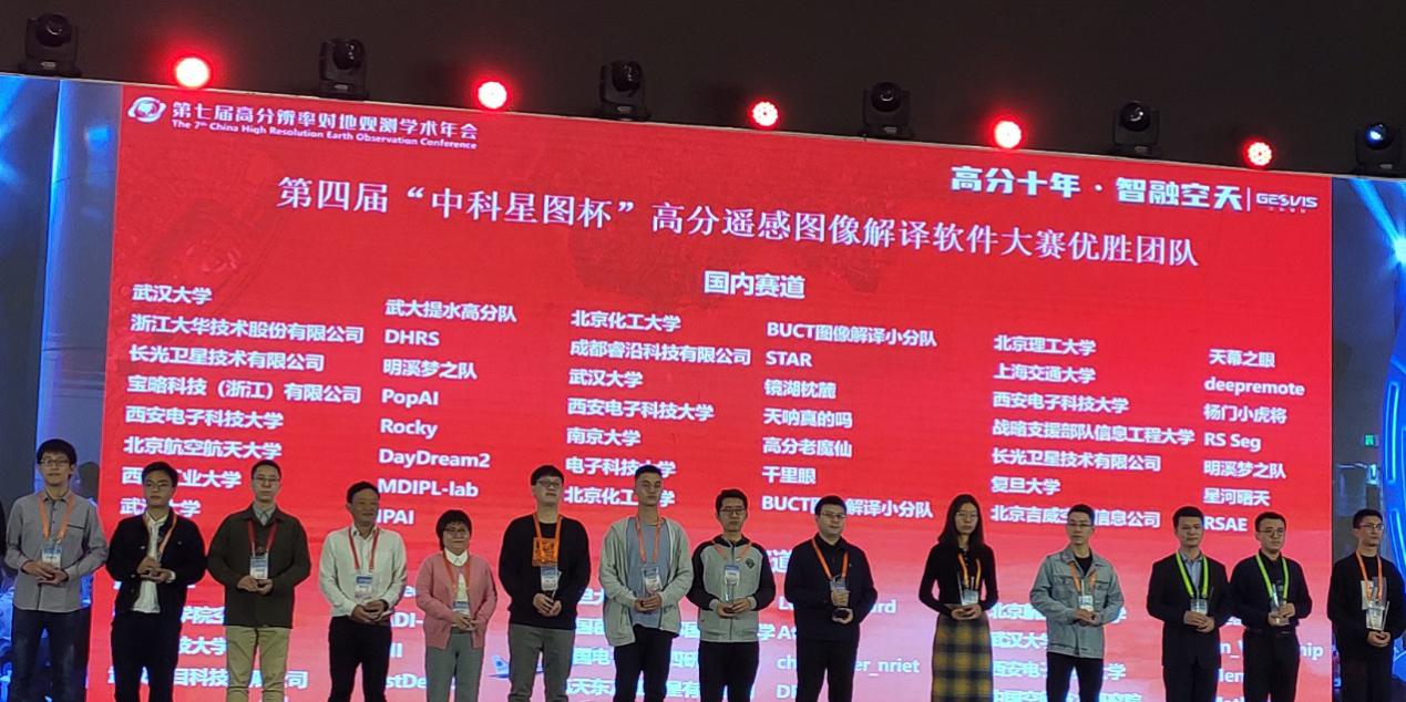 11月17日至19日,第七届高分辨率对地观测学术年会在湖南长沙召开,对我国高分重大专项顶级赛事—“中科星图杯”高分遥感图像解译软件大赛获奖团队进行颁奖。我校人工智能交叉研究中心与信息科学与技术学院师生联队“BUCT图像解译小分队”勇夺两项比赛冠军,张帆、马飞代表团队参会并领取奖杯、证书。