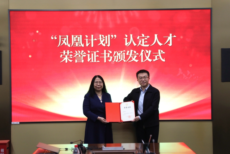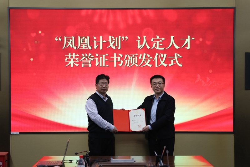 韩庚为我校获得朝阳区2023年“凤凰计划”高层次人才代表袁其朋教授、王志华教授颁发荣誉证书和“凤凰人才卡”,并介绍了朝阳区“凤凰计划”认定工作情况和以“凤凰人才卡”为载体的“1+8”的服务保障体系。他指出近年来朝阳区持续开展“凤凰计划”等高层次人才认定和支持计划,举办ITEC朝阳国际人才创业大会等,多措并举激发人才创新活力,助力朝阳数字经济核心区建设,为朝阳区的高质量发展提供智力保障和人才支撑。