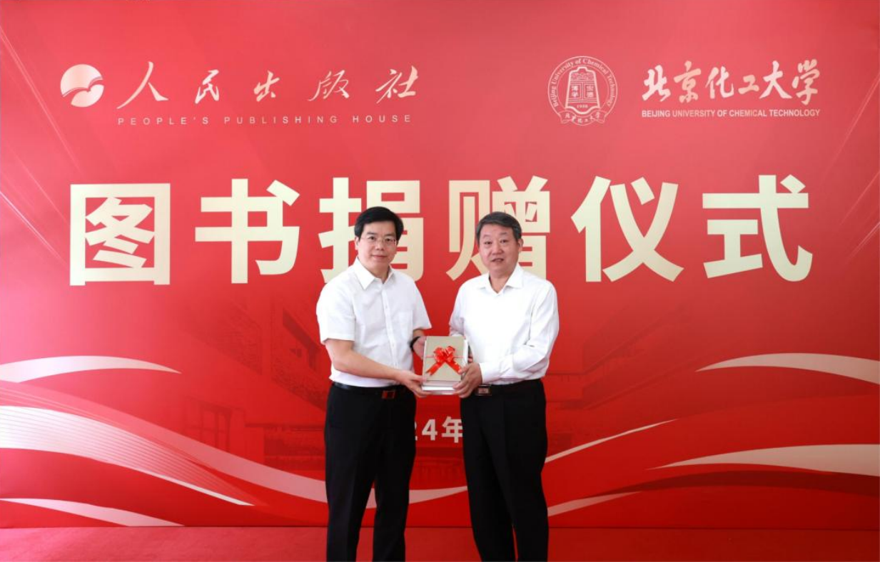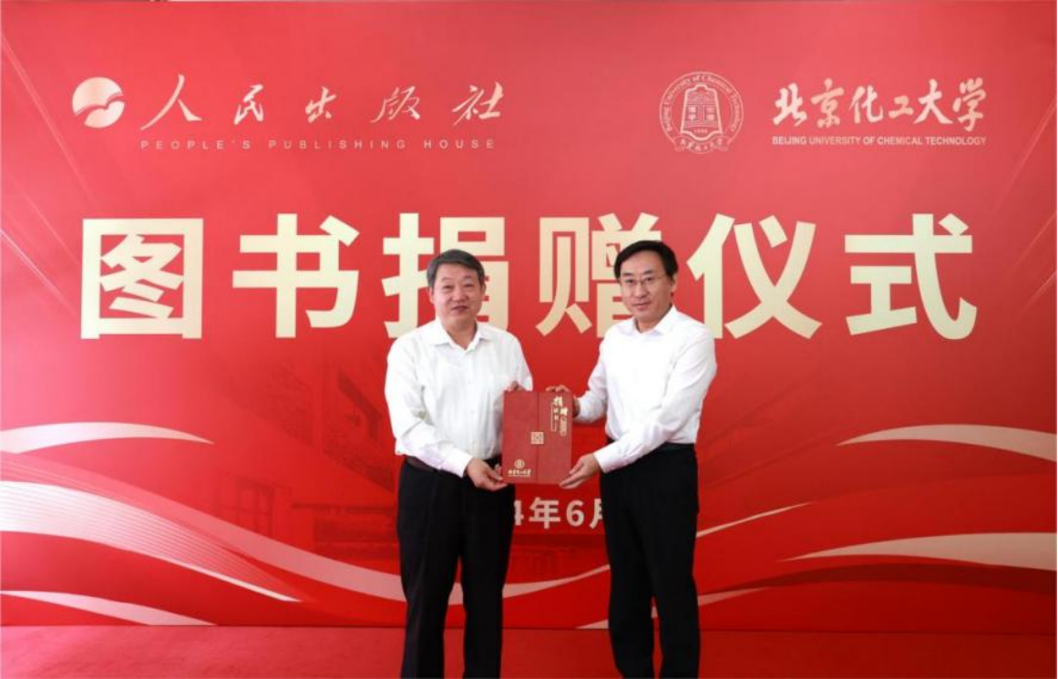 6月28日,人民出版社向北京化工大学捐赠图书仪式在昌平校区文理楼举行。人民出版社党委书记、社长蒋茂凝,全国政协委员、人民出版社原总编辑辛广伟,北京化工大学党委书记刘贵芹出席仪式。仪式由校党委副书记崔春花主持。