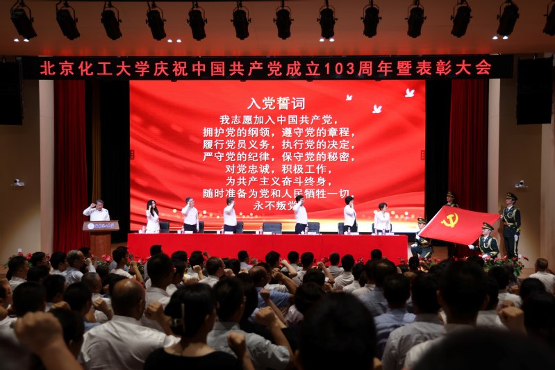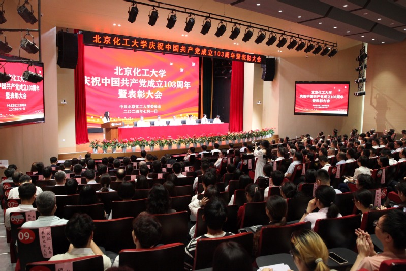 7月1日下午,北京化工大学隆重召开庆祝中国共产党成立103周年暨表彰大会,热烈庆祝建党103周年,表彰先进基层党组织和优秀党员,激励学校各级党组织和党员坚定理想信念、勇担责任使命,接续奋斗、砥砺前行,加快建设中国特色、世界一流的大学和优势学科,奋力在以中国式现代化全面推进强国建设、民族复兴伟业中展现新作为、作出新贡献。党委书记刘贵芹出席会议并讲话。校领导宋来新、甘志华、曲雁、梁永图、苏海佳出席会议。党委副书记崔春花主持会议。
