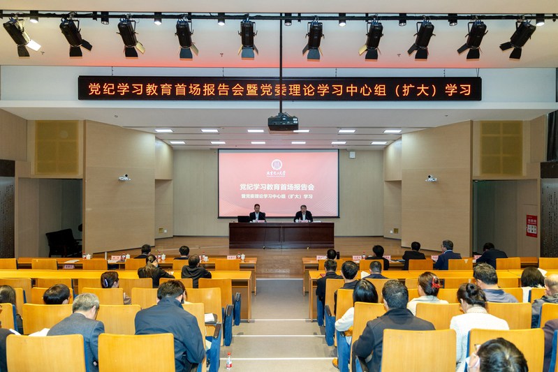 4月12日,北京化工大学党纪学习教育首场报告会暨党委理论学习中心组(扩大)学习在朝阳校区学术报告厅举行。