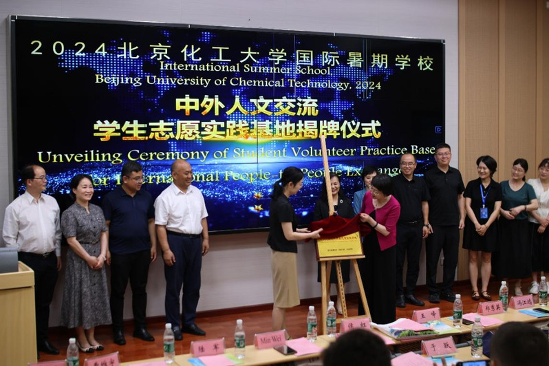 随后,北区办主任郑秀英与化学学院院长卫敏携手为中外人文交流学生志愿实践基地揭牌,现场领导共同见证。在一片热烈的掌声中,北京化工大学国际暑期学校开幕式圆满落下帷幕。
