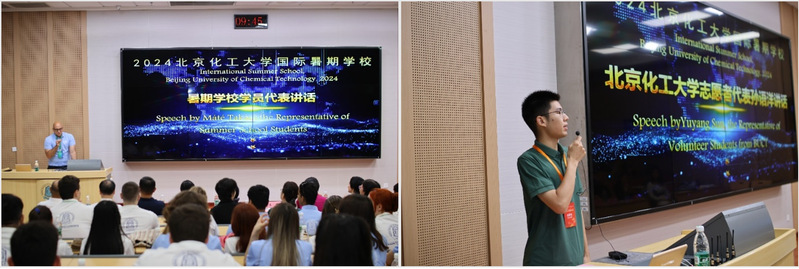 匈牙利米什科尔茨大学Máté Takác,作为暑期学校学员代表发言,他感谢我校组织了这次意义非凡的活动,不仅为他们提供了学习科学知识的宝贵机会,还让他们有机会深入了解中国文化的博大精深。在讲话中,Máté Takác还特别提到了北京化工大学匈牙利米什科尔茨大学孔子学院在传播汉语和中国文化方面的重要作用。随后,志愿者代表孙语洋的发言同样令人感动。他真诚地分享了自己在学校学习期间的经验和感受,表达了对暑期学校学员的热烈欢迎。作为志愿者的一员,他深知自己肩负的责任和使命,表示将尽自己所能帮助学生融入学校,确保活动的顺利举办。