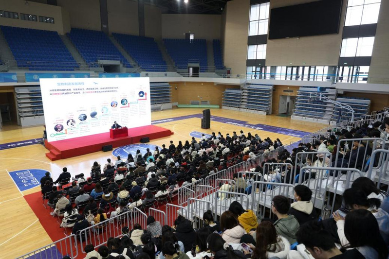 北化新闻网3月15日电  3月13日下午,北京化工大学“宏德讲坛”第四十八讲暨2026年春季学期开学第一课在昌平校区体育馆举行。校长、中国工程院院士谭天伟以“发展生物制造 支撑‘双碳’目标实施”为题作报告。报告会由校党委副书记宋来新主持。