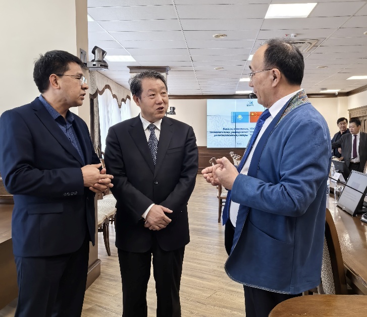 在中国驻哈萨克斯坦大使馆,韩春霖大使会见了代表团。刘贵芹介绍了此次出访的背景、“十四五”时期学校高质量发展情况及与哈萨克斯坦高校开展交流合作有关情况等。韩春霖大使介绍了哈萨克斯坦经济社会发展情况及中哈合作特别是高等教育领域交流合作情况,表示将大力支持我校发挥学科特色优势、加强与哈萨克斯坦高校在化工、环境、人工智能等领域开展交流合作。
