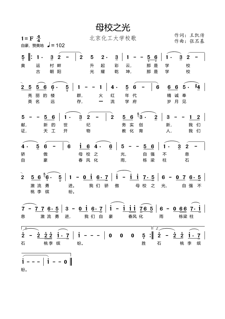 国之名校者,化工大学也。学领中外,贯通古今。宏明德而博学志,秉化育而铸天工。甲子薪传,弦歌谱江河锦绣;筑梦百年,钟灵毓日月华光。砥砺化大,峥嵘甲子。新中国之开基,立治学报国之远景;戊戌年之始建,展化工教育之宏图。时忆创业之艰苦,筚路蓝缕,矢志育才之担当,任重道悠。刮摩淬励,索隐探赜;餐风宿草,傲雪凌霜。冬寒抱冰,夙夜阅经史而匪懈;夏热握火,朝夕竞修业而不辞。凛文革之浩劫,云扰幅裂;乘改革之风劲,策马扬鞭。陵谷沧桑,赤诚未改,春秋代序,初心不移。火红年代,竭精诚之奉献,崭新纪元,奋激流而扬帆。师表化大,菁莪甲子。四方辐辏,十步芳泽。学为人师,铸陶钧而启心智,德为世范,扬正气而树高风。含英咀华,吐纳潘江陆海,滋兰树蕙,躬表清风峻节。博文约礼,春风时雨善教化,养正修能,桃李馥郁竞争妍。英才渊薮,蓓蕾葳蕤。人文标秀,理工俊彦,学人风华正茂,才子德润圭璋。祥麟威凤,智绝斗南真国士;楚璧隋珍,才耀穹顶倚星辰。学术之中坚,路漫求索而征险峻,行业之翘楚,恪尽职守而树丰碑,商界之精英,运筹帷幄而筑实业,治国之栋宇,兼善苍生而耀邦途。弘毅旷达,天地立心披肝胆;铁肩道义,生民立命树脊梁;踵武前贤,继往绝学赓庠序;忧乐天下,万世开泰振中华。钟灵化大,风华甲子。母校之光,乾坤朗照。侯德榜之尊雕,高山景行励学子;毛泽东之巨像,家国情怀崇伟人。图书馆之卷帙浩繁,横观四海传道,主教楼之黉门肃穆,纵览百家争鸣。玉屏山上,层染草木绘葱茏,燕贺亭间,泽沐轻风送爽朗。启荣园内,晨晓书声相传,实验楼中,夜静深灯为伴。春发玉兰,夏挂紫藤,秋落银杏,冬凛白雪。柳湖畔,碧玉丝绦弄清影,荷塘边,泛水清波漾池心。海棠花溪,姹紫嫣红争国色,紫藤廊岸,密叶香风掩珠帘。雄心化大,辉煌甲子。圣手琢星宇,匠心蕴天工。化工之为根基,稳居前列,文理而兼相长,各有专攻。十五学院,皆有鸿儒泰斗,三大校区,俱是学宫圣坛。明伦流瀚,绛帐授徒。捭阖学海,纵横文江。茂绩殊勋,喜望科研结硕果,蹙金结绣,欣企学术攀高峰。创一流之学问,声震八荒,培优等之人才,名扬宇内。嘉客盈门,广结天下之雅士,高朋满座,畅谈天道之真知。胜友来贺,歆慕龙章凤彩,鸿雁归巢,思忆心照情交。扶摇万里,一流大学鹏程启;坦荡千秋,中华复兴伟业担。